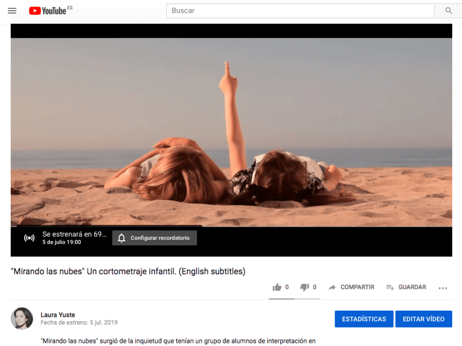 Este mes de Julio empezaré a colgar vídeos de proyectos de los cursos que he impartido, para empezar hoy estrenamos a las 19h el cortometraje "Mirando las nubes" un cortometraje que escribí y dirigí. "Mirando las nubes" surgió de la inquietud que tenían un grupo de alumnos de interpretación en rodar un cortometraje, todos participaron …